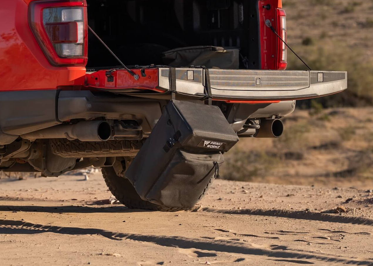 Its pivoting design keeps contents accessible whether your tailgate is open or closed, while a reinforced bottom and drainage-ready base make it ideal for muddy gear, recovery tools, or trail trash.